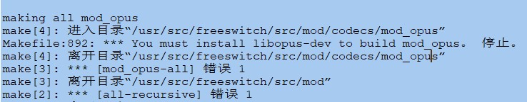 依然编译不过去,提示 “You must install libopus-dev to build mod_opus. Stop.”