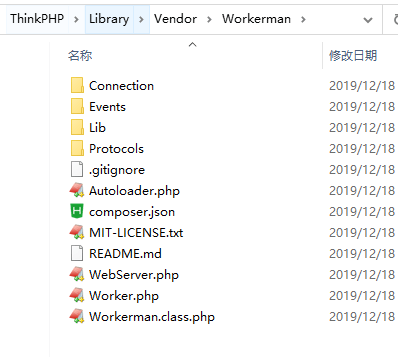 现在后解压,将内容复制到 ThinkPHP/Library/Vendor 目录下的Workerman 文件夹中,在文件夹中 新建 Workerman.class.php 文件,将原来的Worker.php 与 Autoloader.php 合并到 Workerman.class.php 文件中,两个文件最顶部都有