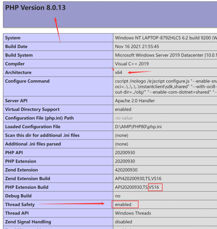 Thread Safety 如果是enabled,就是ts 版本,线程安全,一般在IIS以ISAPI方式加载的时候选择这个版本,