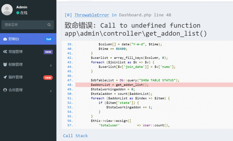 安装后后台会出现错误,是因为fastadmin-addons的版本太高了,我们把2.1的版本删掉,将原来的文件复制回来,就会正常了