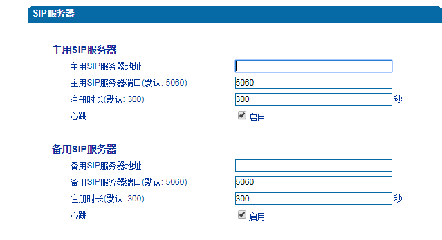 配置SIP 相关参数,设置主服务器地址,如果有备用系统,可进行相应的设置,其它参数可使用默认